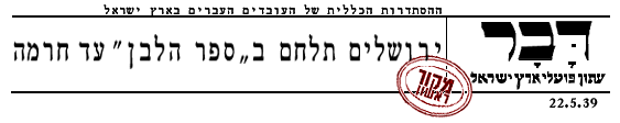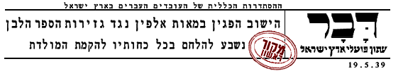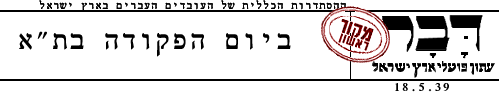היום, יום חמישי כ"ט (18.5.39) מעלות השחר ועד אחרי חצות הלילה, הוא יום שבתון, מחאה, הפגנה ומפקד.